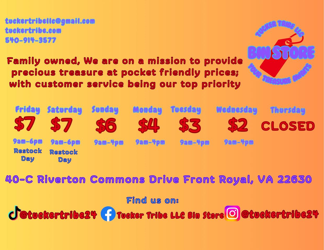 Like us on Facebook at Tucker Tribe LLC Bin Store to keep up with all things Tucker Tribe LLC. We post special contest, games and more. Don't miss out on all the fun we have at Tucker Tribe LLC Bin Store